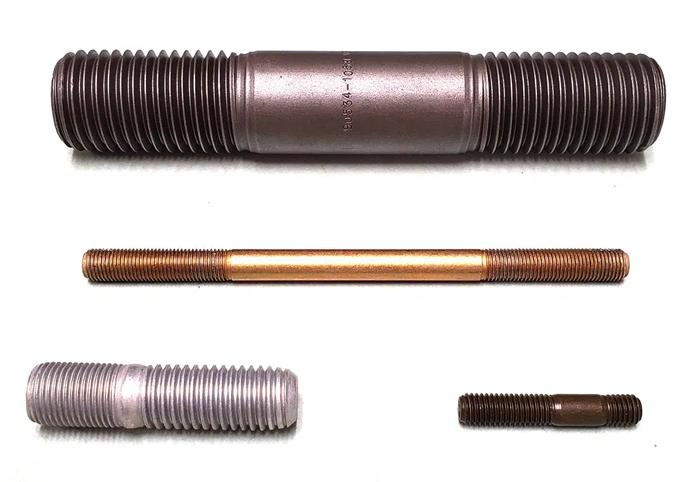 - Studs that have different threads at both ends, and an unthreaded body in the middle